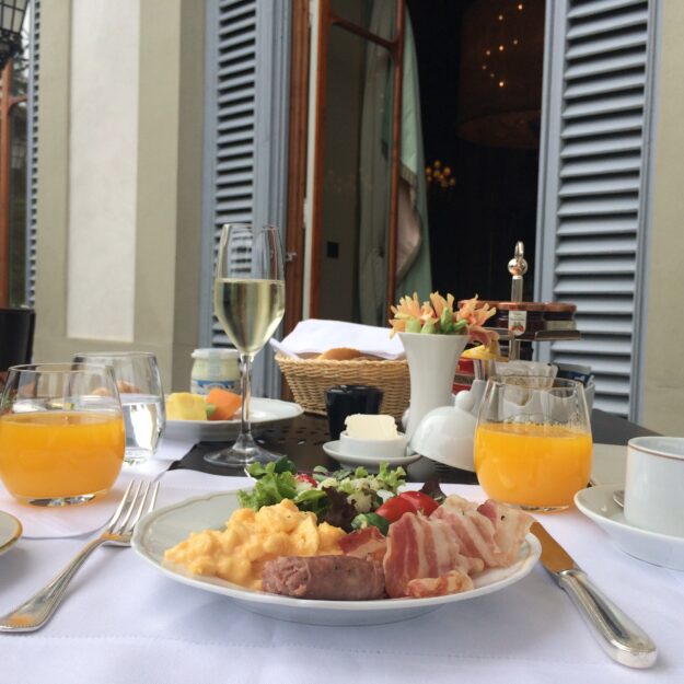 หลังจากอิ่มท้องและเดินย่อยไปบ้างก็รีบขับตรงดิ่งไป Florence เข้าcheck-in ที่โรงแรมกันค่ะเพราะเหนื่อยมากแล้ว ในที่สุดเราก็มาถึงยังที่พักในฝัน “Villa Cora” ที่นี่เคยเป็นบ้านขุนนางสร้างขึ้นตั้งแต่ปีค.ศ. 1868 สมัยที่ Florence ยังเป็นเมืองหลวงอยู่ค่ะ ที่นี่เหมือนเป็นLove at first sight ของพัดเลยค่ะ สถาปัตยกรรมและการตกแต่งภายในที่นี่งดงามตรึงตาตรึงใจมากจริง ๆ เหมือนเราได้หลุดเข้าไปอยู่ในสมัยที่Florenceยังรู่งเรือง พัดมโนหนักมากค่ะพูดเลย ที่นี่แบ่งออกเป็น 2 อาคารค่ะ ส่วนอาคารหลักจะเป็น Lobby และห้องอาหารเช้า อีกอาคารติดกับสระว่ายน้ำจะเป็นส่วนของห้องพักค่ะ ทั้ง 2 อาคารจะมีทางเชื่อมใต้ดินค่ะ(เก๋มากมาย) และมีสปาอยู่ชั้นใต้ดินด้วยค่ะ และที่เริ่ดอีกอย่างคือถึงเราจะไม่เข้าสปาแต่ก็สามารถมาใช้ Jacuzzi น้ำร้อนที่สปาได้ค่ะ ฟรีด้วย! เหมาะกับการมาแช่ตัวผ่อนคลายจากjet-lagมาก ๆ จัดไปค่ะ 🙂