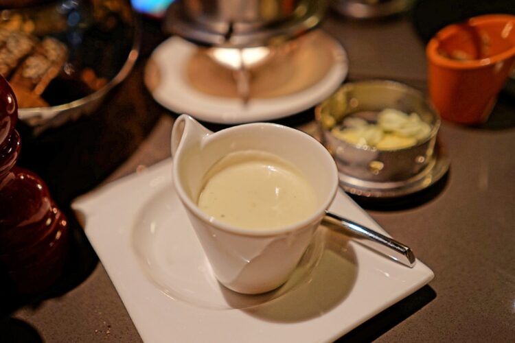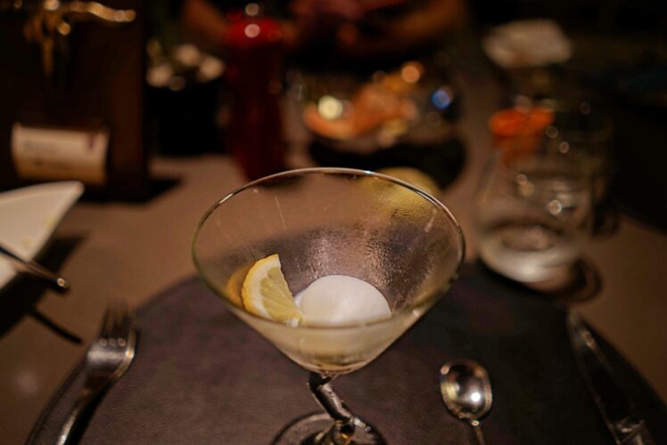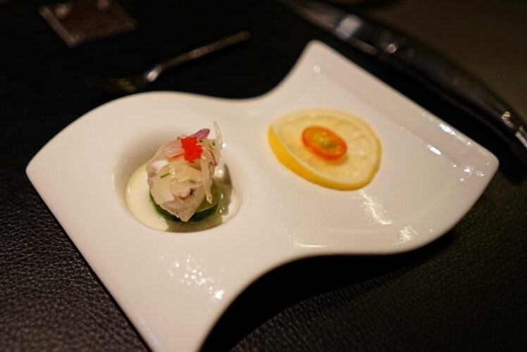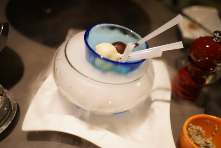 มาถึงทางร้านเค้าก็จะเสิร์ฟขนมปังให้ค่ะขนมปังเค้าก็อร่อยเลยนะ แล้วก็จะมีของว่างให้พัดก็ไม่รู้เหมือนกันว่ามันคืออะไรรู้แต่ว่าเป็นปลา แต่ก็อร่อยดีค่ะ ก่อนที่อาหารจานหลักจะมาเสิร์ฟทางร้านเค้าก็จะมี sorbet มาให้ทานล้างปากก่อนด้วย 🙂