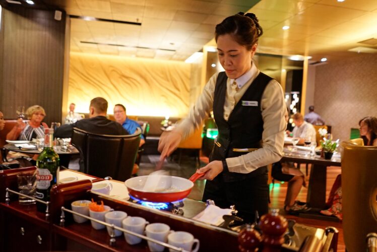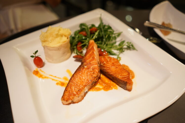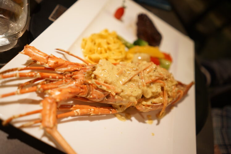 เนื่องจากพัดกับที่บ้านทานอาหารกันค่อนข้างน้อยก็เลยขอข้ามไปที่ Main course เลยค่ะ เราไม่ได้สั่ง appetizer นะคะเพราะไม่งั้นจะอิ่มก่อน steak จะมาแน่ ๆ ค่ะ พัดสั่ง Chantaporn’s signature ซึ่งเป็น Steak ที่ท็อปด้วย Foie Gras ค่ะ เนื้อนุ่มมากกกกกก และพัดขอซอส Blue Cheese มาเพิ่มด้วยแต่พัดว่าไม่ต้องใส่ซอสอร่อยกว่าค่ะ ส่วนอีกจานเป็น Signature ของที่ร้านอีกเหมือนกันค่ะ จะเป็นsteakเนื้อเสิร์ฟมากับ lobster อีก 1 ตัว น่าทานม๊ากกกกกก แต่พัดแพ้กุ้งก็อดไป(แต่คุณพ่อบอกว่าอร่อยค่ะ) สำหรับจานนี้พนักงานเค้าจะมา cook ตัว lobster ให้ดูถึงโต๊ะเลยค่ะ กลิ่นนี่หอมยั่วยวนใจมาก ๆ T-T สำหรับคนไม่ทานเนื้อพัดก็มีมาแนะนำค่ะ เป็น grilled Salmon ค่ะ หน้าตาดีรสชาติอร่อยอีกเหมือนกันคอนเฟิร์ม