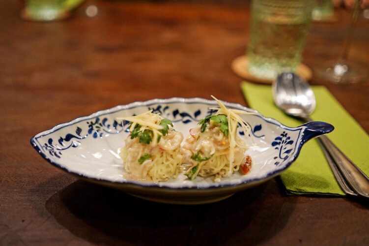 พัดพึ่งได้มีโอกาสไปลอง chef’s table ที่ “Bangkok Bold Cooking Studio” มาค่ะ เรียกได้ว่าเป็นประสบการณ์ใหม่ที่ไม่เคยเจอมาก่อน  ร้านนี้จะเสิร์ฟอาหารไทยแบบต้นตำรับ  และเค้ามีแค่ 1 โต๊ะเท่านั้นรับลูกค้า 6-10 ท่านต่อครั้งและเค้ามีแค่วันละรอบช่วง dinner เท่านั้นค่ะ  และเราไม่สามารถเลือกเมนูได้นะคะแล้วแต่ว่าเชฟจะทำอะไรในวันนั้น ๆ แต่ทางร้านเค้าก็จะถามมาก่อนนะคะว่าเราไม่ทานอะไรบ้าง  แพ้อาหารอะไรบ้างค่ะ