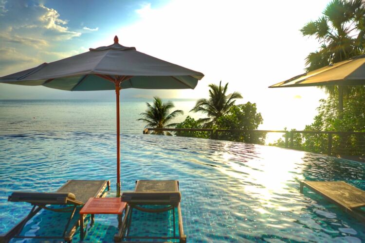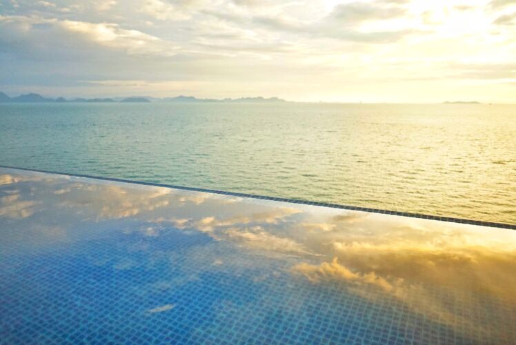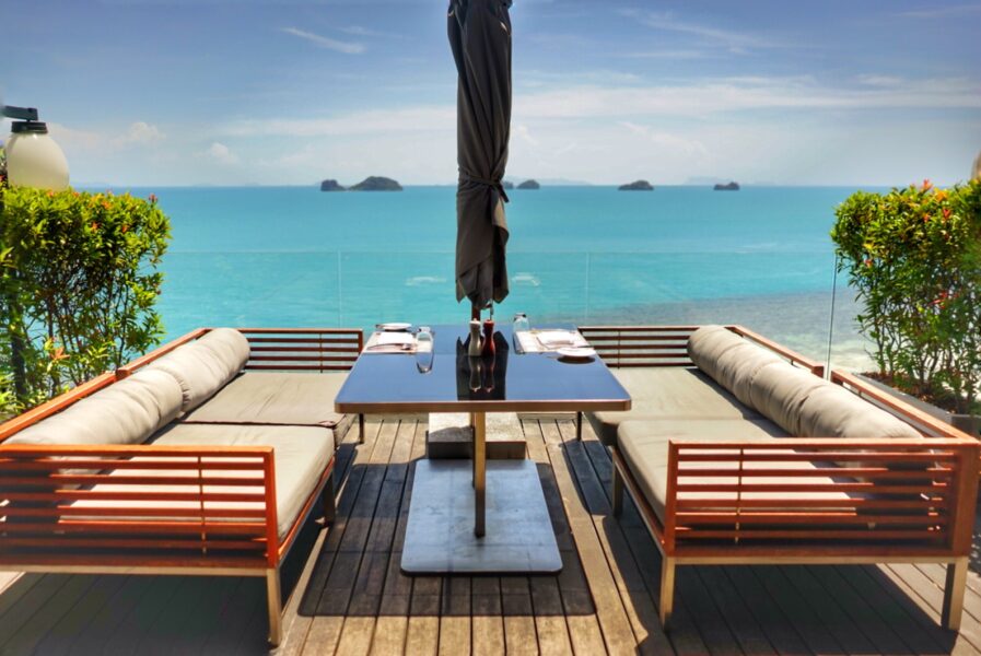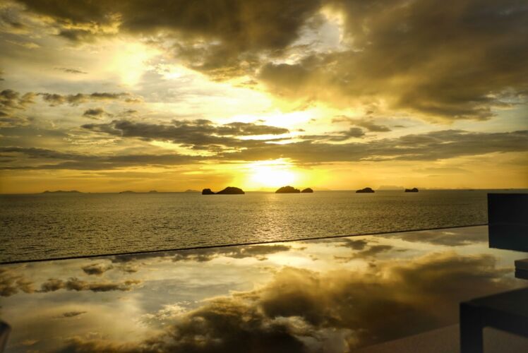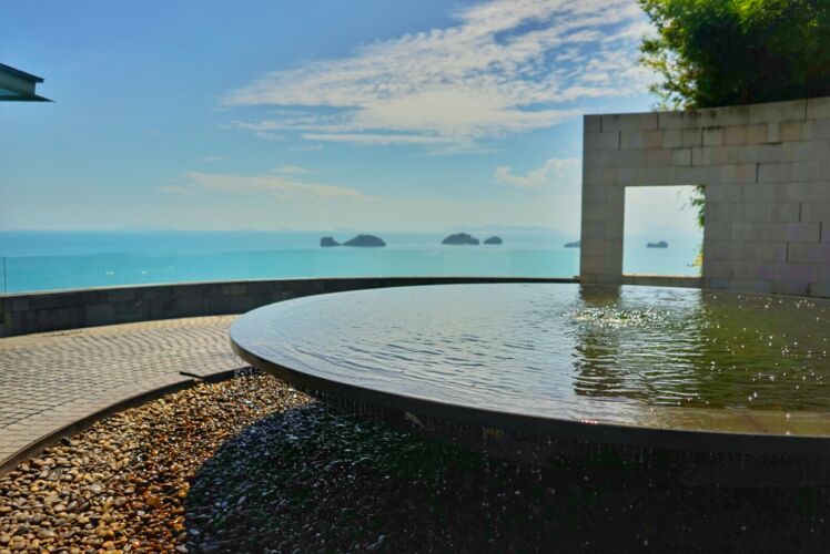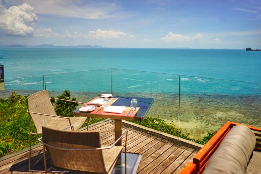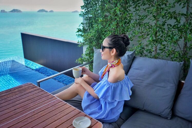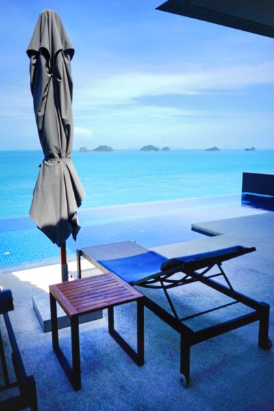 ทางเข้าโรงแรมค่อนข้างน่ากลัวทางชันมากและคดเคี้ยวไม่เหมาะกับการขับขึ้นมาเองเป็นอย่างยิ่งค่ะ โชคดีที่เรามีรถโรงแรมมารับ พอขึ้นมาถึง lobby ก็ต้องตื่นตาตื่นใจกับวิวบนนี้ วิวสวยมากกกกท้องฟ้าก็สดใสเป็นใจ น้ำทะเลก็สีสวยมากแล้วยังเห็นเกาะเล็กเกาะน้อยอีก ได้นั่งรับลมเย็น ๆ ชมวิวระหว่างเช็คอินอารมณ์ดีขึ้นมาเลยค่ะ 😀