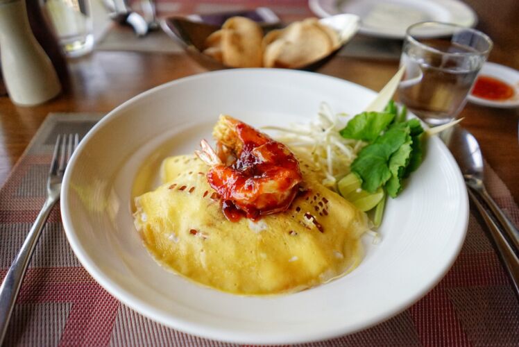 ยังไม่หมดกับการรีวิวอาหารนะคะ อย่าพึ่งเบื่อค่ะ พัดยังไม่หมดหวังกับอาหารที่นี่หลังจากใจชื้นจากอาหารเช้าที่แสนดีงาม เลยสั่ง room service มาลองทานที่ห้องดูบ้างค่ะ เพราะที่ระเบียงห้องวิวดีอากาศดีสุด ๆ แถมตอนเย็นยังเห็นพระอาทิตย์ตกสวยมาก ๆ ด้วยจะพลาดได้ยังไง คราวนี้พัดสั่งอาหารง่าย ๆ อย่างข้าวกระเพราไก่ไข่ดาว ปอเปี๊ยะทอด และยำเนื้อย่าง แต่ไม่ลืมบอกว่าขอรสชาติแบบไทย ๆ นะคะ คราวนี้เลยได้อาหารอร่อยสมใจทุกอย่าง ยิ้มออกเลยทีเดียว 🙂