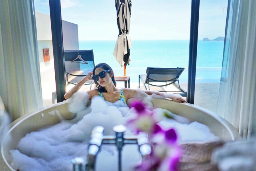 ก็ยังเป็นสไตล์ทริปชิลล์ ๆ ของคนขี้เกียจเหมือนเดิมค่ะวัน ๆ ไม่ทำอะไรมาก กิน ๆ นอน ๆ ตั้งใจว่าจะอยู่แต่ในโรงแรม แบบว่ามาพักผ่อนชาร์จแบตให้เต็มที่กันไปเลย พัดเลยไม่ได้เช่ารถหรือวางแผนหาร้านอาหารอะไรไว้ วันแรกพอมาถึงสนามบินเกาะสมุยก็จะมีรถของโรงแรมมารอรับ เอาจริง ๆ บอกว่ารวม Airport Transfer เราก็นึกภาพใว้ในใจว่าเป็นรถลิโมของโรงแรมแต่เอาเข้าจริงเป็นรถตู้ ประมาณว่าเอารถ shuttle ของโรงแรมมารับอะไรแบบนั้นค่ะ รถสภาพแย่ไปหน่อยค่อนข้างเก่าและไม่ดูแลให้สภาพดูดี มันไม่ใช่มาตรฐานโรงแรม 5 ดาวเลย อันนี้ขอบ่น!