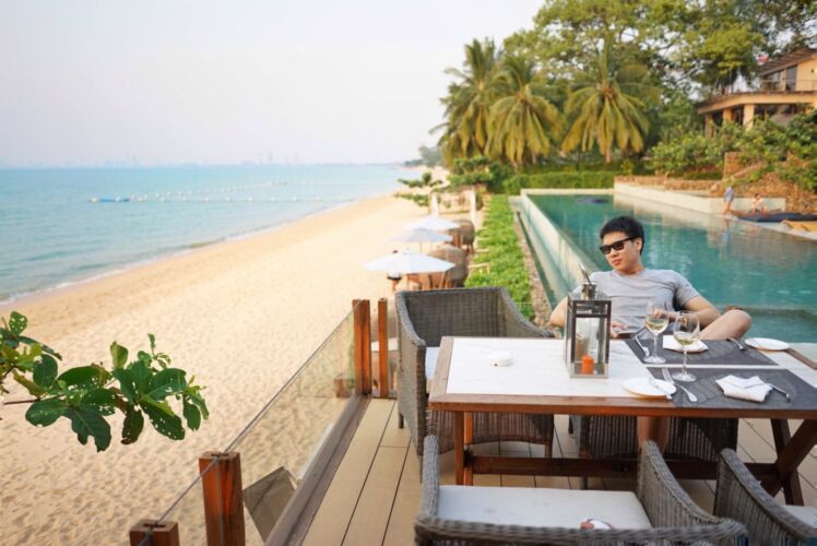 ในส่วนของห้องอาหารนั้นพัดประทับใจมากเพราะนอกจากสวยแล้วยังมีหลายโซนให้เลือก มาพักหลายวันก็ไม่เบื่อแน่นอน ทั้งส่วนภายในตัวอาคาร โซฟาริมสะว่ายน้ำ ระเบียงริมหาด