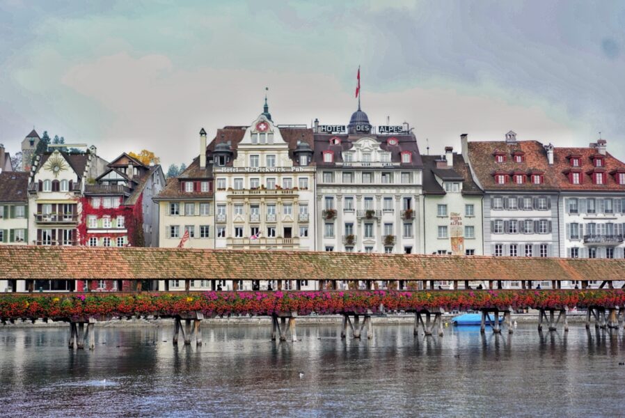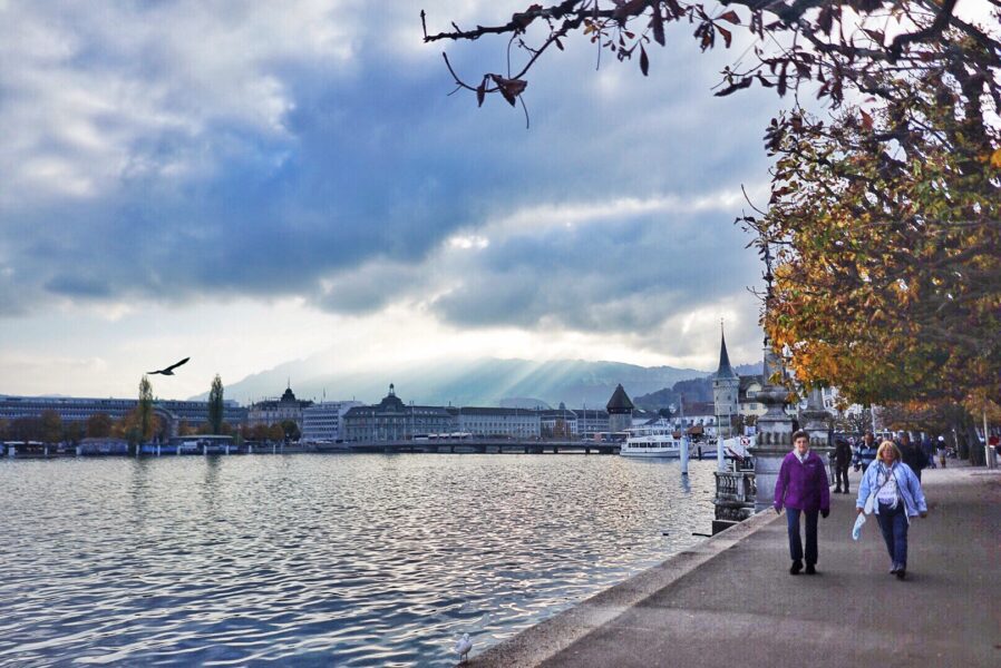 ระหว่างที่อยู่ที่เมืองนี้พัดก็ไปเดินเล่นริมทะเลสาบ Lake Lucerne มีสะพาน Kapellbrücke (Chapel Bridge) เป็นสะพานไม้ยาวข้ามสะเลสาบมีหลังคาและปลูกดอกไม้ประดับตลอดแนวเป็นสะพานที่น่ารักทีเดียว เรียกว่าเป็นสัญลักษณ์ของลูเซิร์นที่ใคร ๆ ก็ต้องไปถ่ายรูปค่ะ แถวนี้นกนางนวลบินเต็มไปหมดแล้วในทะเลสาบยังมีห่านและเป็ดว่ายกันเต็มเลยค่ะน่ารักมากประทับใจกับความสะอาดและการรักษาสิ่งแวดล้อมของเค้าให้อยู่ร่วมกับสัตว์พวกนี้ได้ ใครไปกับแฟนต้องมาเดินเล่นริมเลคให้ได้นะคะบอกเลยว่าโรแมนติกม๊ากกกกกก วิวสวยจริง ๆ ค่ะ