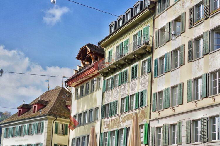 ส่วนในเมืองก็จะมีร้านค้าร้านอาหารขนาดค่อนข้างเล็กค่ะ ที่โดดเด่นก็คือตึกรามบ้านช่องเค้าจะเพ้นท์ภาพและลวดลายต่าง ๆ ตกแต่งด้านนอกตัวตึกเป็นโทนสีพาสเทลซะเป็นส่วนมากค่ะ ถือเป็นเอกลักษณ์ของเมืองนี้เค้าค่ะ