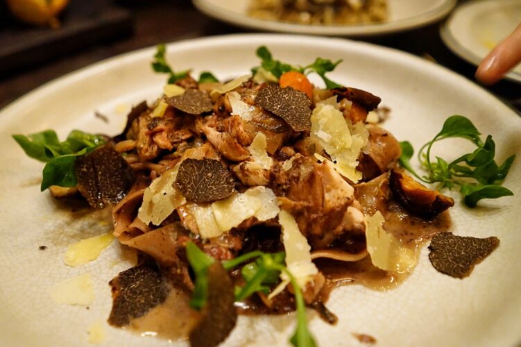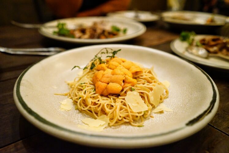 ต่อมาจัดหนักรัว ๆ ด้วยพาสต้าค่ะ มี “Black Truffle Fettuccine”จานนี้ชอบมากเป็นพิเศษครีมมี่มากเข้มข้นสะใจและหอมสุด ๆ “Black Truffle Risotto” และอีกจานเป็น “Tagliatelle Coq Au Vin” (red wine-craised chicken thign&truffle cream topped with parmesan, watercress, sauteed shitake and shaved black winter truffle) ทรัฟเฟิลมาเต็มอีกเหมือนกันจานนี้ก็อร่อยค่ะ และ angel hair with sea urchin จานนี้ก็ดีงาม ไข่หอยเม่นคือหวานมันไม่คาวเลยอร่อยกว่าที่ร้านอาหารญี่ปุ่นหลาย ๆ ร้านแล้วให้มาแบบจุใจ เลิฟฟฟ