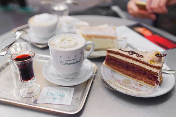 ตกบ่ายเราก็แวะ Cafe Tomasselli จิบกาแฟทานขนมกันซักหน่อย  ร้านนี้ก็เป็นอีกร้านเก่าแก่ของเมืองค่ะ  พอมานั่งเค้าจะมีแต่เมนูเครื่องดื่มและไอศครีมให้ค่ะส่วนขนมก็จะใส่ถาดใหญ่ยกมาให้เลือกถึงโต๊ะเลยค่ะ  พนักงานร้านนี้ส่วนมากก็จะเป็นลุง ๆ ป้า ๆ ดูท่าจะอยู่กันมานานแล้ว  ขนมที่พัดสั่งมาอร่อยทุกอย่าง เครื่องดื่มก็โอเคเลยค่ะ