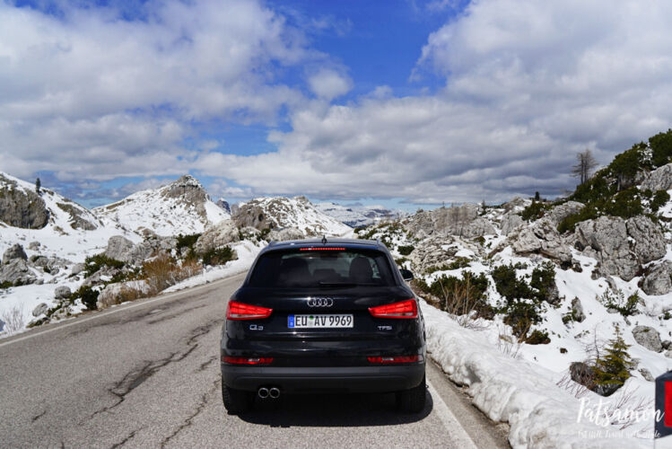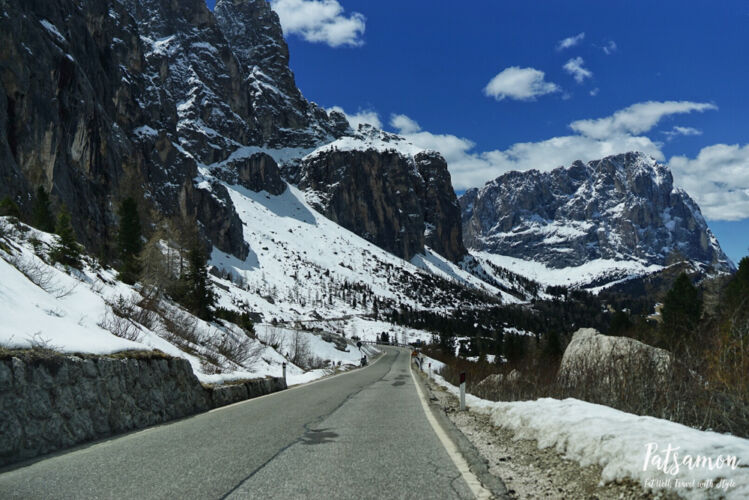 หลังจากชิลล์มาหลายวันวันนี้แหละของจริง road trip ยาวทั้งวันขึ้นเขาลงเขาจากข้างทางเป็นป่าอากาศอุ่น ๆ มีเป็ดว่ายน้ำจนกลายเป็นลานหิมะปกคลุมขาวโพลนเพราะเราจะขับรถขึ้นไปถึงยอดเขาแล้วขับวนลงมาค่ะ วันนี้จะเห็นวิวหลายบรรยากาศมาก ขอเตือนสำหรับคนที่ชอบเมารถทานยากันไว้ก่อนเลยนะคะ วันนี้จะได้เจอโค้งหักศอกเป็นร้อยโค้งแน่นอน ใครเคยไปแม่ฮ่องสอนมาแล้วพัดว่าอันนั้นเด็ก ๆ ไปเลยเมื่อมาเจอ Dolomites !