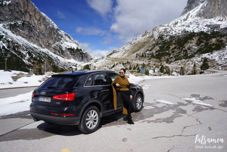 เดิมทีพัดตั้งใจว่าทริปนี้จะเช่ารถสปอร์ตขับเพราะอากาศดีมาก จะได้เปิดประทุนรับลมสูดอากาศบริสุทธ์ตลอดทาง แต่เนื่องด้วยจำนวนและขนาดกระเป๋านั้นใส่รถไม่พอค่ะเลยต้องเปลี่ยนแผลเช่ารถ SUV four wheel drive แทนค่ะ ซึ่งก็คิดถูกมาก ๆ ค่ะเพราะเส้นทางคดเคี้ยวขึ้นลงเขาตลอดเวลาที่อยู่ที่ Dolomite ขับ SUV ปลอดภัยกว่ามากแล้วก็นั่งสบายกว่าด้วยค่ะ