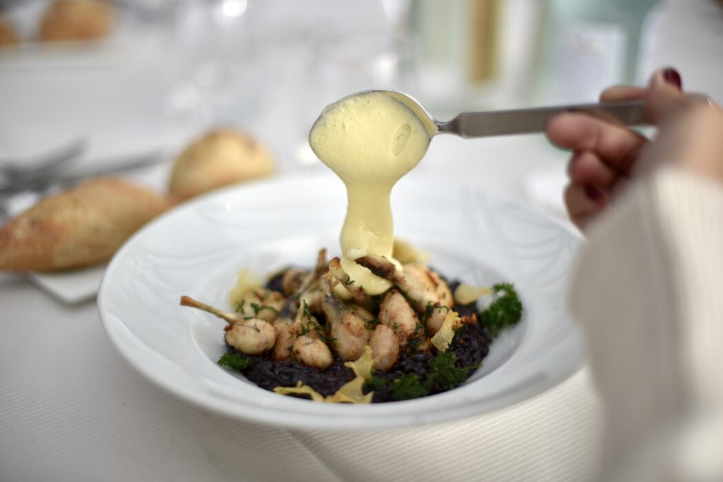 อาหารที่นี่เป็นอาหารฝรั่งเศสและเป็นเซ็ตเมนูค่ะ เราจะสั่งไม่ได้นะคะแต่แจ้งได้ว่าไม่ทานอะไรค่ะ