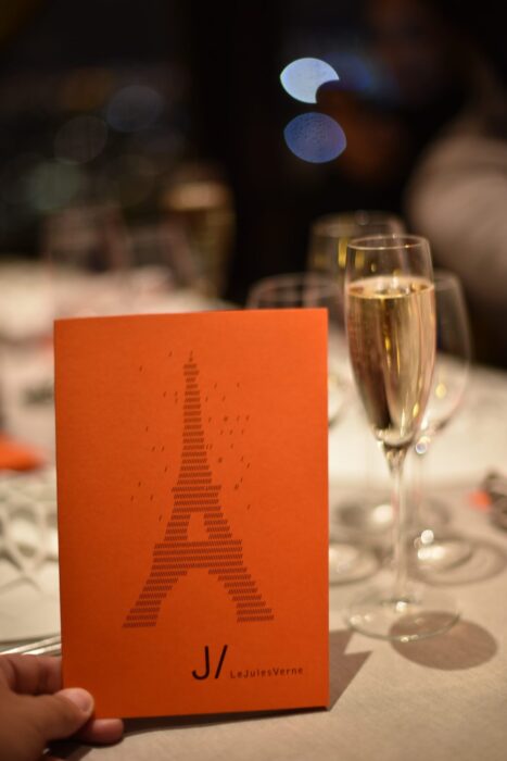 จากนั้นก็ถึงเวลาที่เราเฝ้ารอค่ะก็คือไปดินเนอร์บนหอไอเฟลที่ร้าน Le Jules Verne ปกติร้านนี้ต้องจองล่วงหน้ากันร่วมครึ่งปีนะคะไม่ใช่อยากจะมาก็มาได้ค่ะ แต่แน่นอนว่ามากับ World Surprise และ Paris Tourisme อะไรก็เกิดขึ้นได้