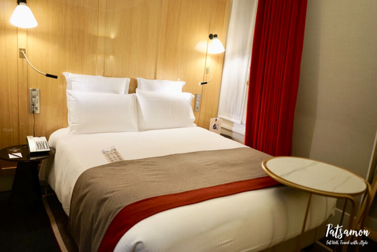 วันนี้เราย้ายโรงแรมมาพักกันที่ Hôtel l’Echiquier เป็น boutique hotel เล็ก ๆ อีกแห่งในเครือโรงแรม Accor ค่ะ โรงแรมนี้จะใหญ่กว่าที่แรก ห้องขนาดไม่เล็กไม่ใหญ่ ข้าวของเครื่องใช้ครบครันเหมือนเดิมค่ะ แต่ที่พัดชอบเป็นพิเศษคือห้องอาหารสำหรับทานอาหารเช้าบรรยากาศดีเหมือนทานอาหารอยู่ในสวนค่ะ