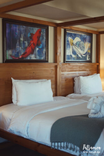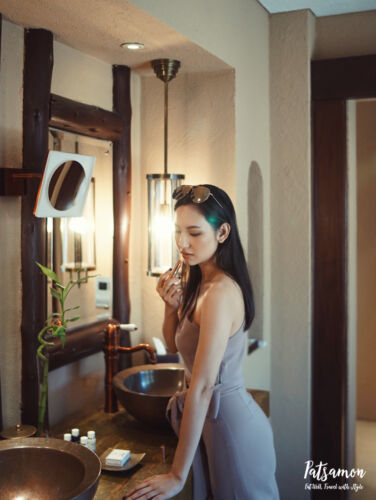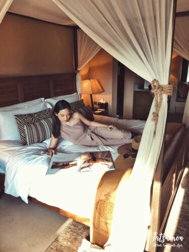 ในส่วนของวิลล่าของเราก็จะให้อารมณ์เหมือนกางเตนท์กลางป่ามาก ๆ ค่ะ แต่ภายในห้องก็ตกแต่งสวยงามเหมือนนอนรีสอร์ท ที่ระเบียงมีสระน้ำเล็ก ๆ ใว้ให้แช่ตัวด้วยค่ะ