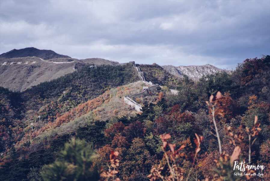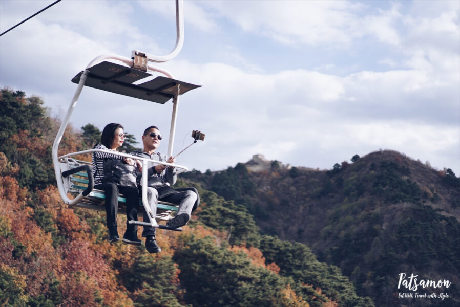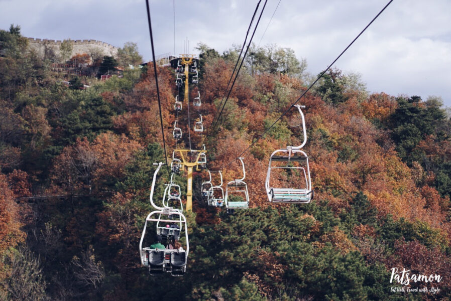 มาถึงวันแรกยังไม่ทันจะประกอบร่างเสร็จก็ต้องขึ้นรถไป “กำแพงเมืองจีน” แล้ว บอกเลยว่าหลับตลอดทาง  พอไปถึงพัดก็ซื้อตั๋วขึ้นกำแพงเมืองจีน เค้ามีหลาย option ให้เลือกตามอัธยาศัย  พัดกับเพื่อน ๆ เลือกขึ้นโดย gondola แล้วขาลงลงแบบสไลด์เดอร์เพราะฟังดูน่าสนุก  ในส่วนของขาขึ้นจะบอกว่ามันไม่ปลอดภัยเอาซะเลย นั่ง ๆ นี่ก็ตัวเกร็งมากค่ะแต่วิวสวยจริงอะไรจริง  ช่วงที่พัดไปใบไม้เปลี่นนสีพอดีถ่ายรูปออกมาสวยมากค่ะ