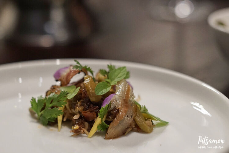 ตามสัญญาว่าจะพาไปดินเนอร์ฮิป ๆ ที่อุดร พัด proudly present ร้าน gastronomic เมืองอุดร้านนี้มากค่ะนั่นก็คือ “ซาหมวย แอนด์ ซันส์ (Samuay & Sons)” เป็นอาหารไทยฟิวชั่นที่มีกลิ่นอายของอาหารอีสานเบา ๆ จากการนำวัตถุดิบพื้นบ้านมาใช้ ที่นี่มีทั้ง a la carte และ set menu แบบ 9 courses ซึ่งพอเค้าบอกราคาเซ็ตเมนูมาพัดตกใจมาก 9 อย่าง 950 บาท!!! ถูกไปอีก พัดเลยสั่งมา 1 เซ็ต และ a la carte อีก 2 จานมาแบ่งกันทาน 2 คนค่ะ
